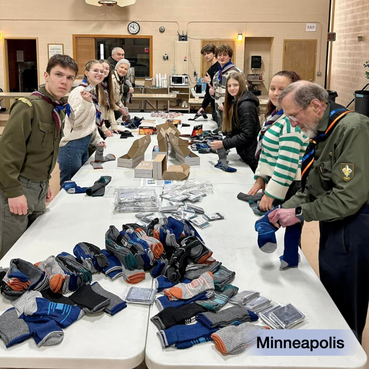 A total of 3,219 pairs of socks were shipped. Scouts on the front lines are very grateful!